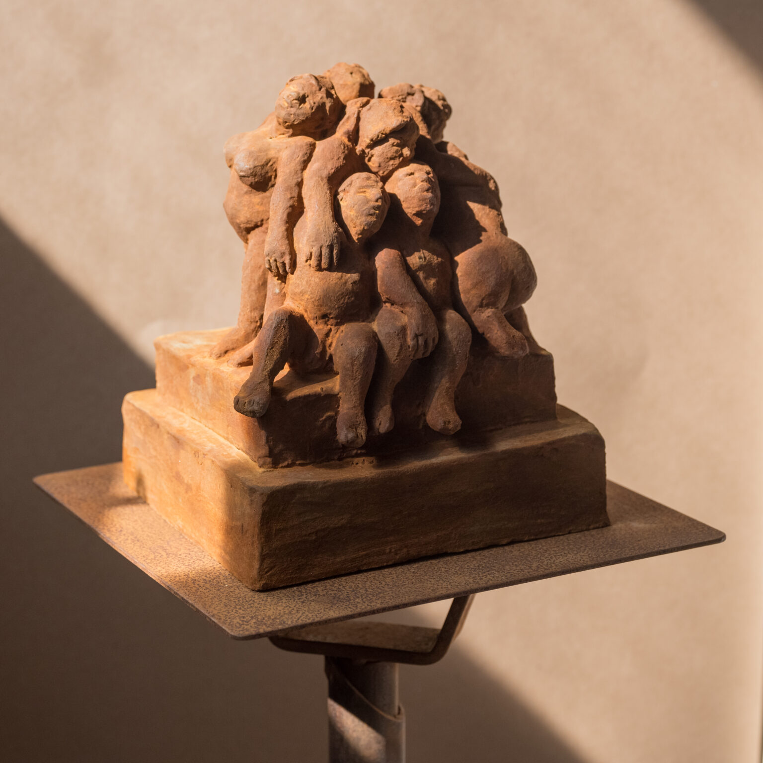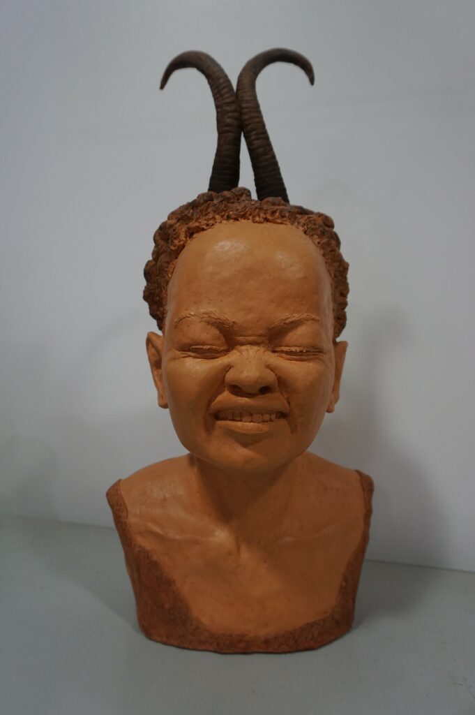 d’humour. Terre cuite chamottée, légèrement patinée, la matière prend forme en secret dans mon atelier depuis près de 20 ans.