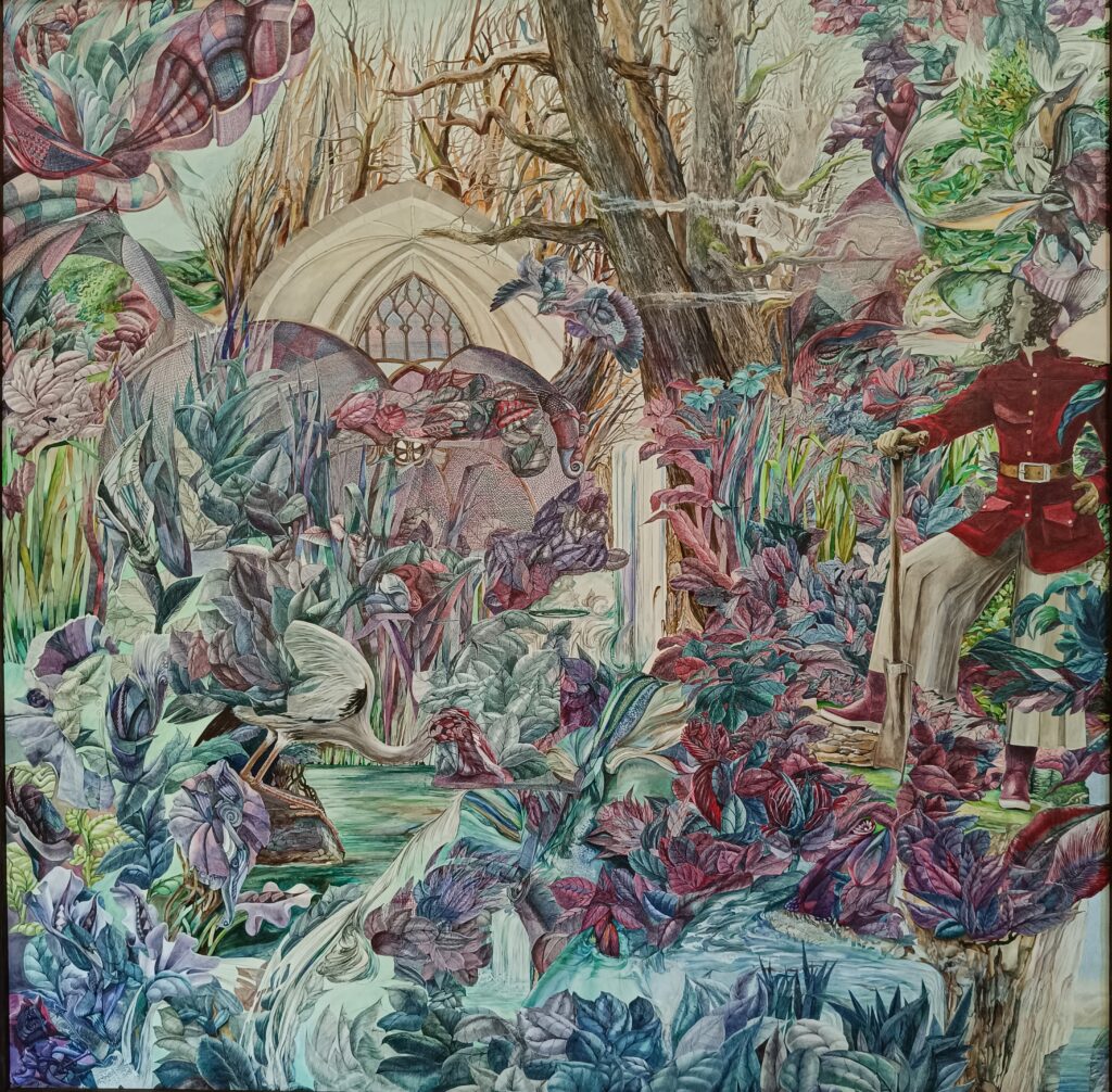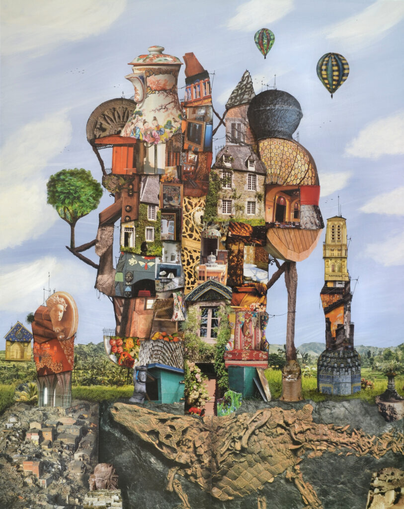 A priori , j’ignore tout de la composition globale, du thème abordé, du sens que cela aura. Ces figures dessinées, ces fragments de paysages naissent parfois, en se répondant les uns les autres. C’est de leur articulation que va naître la cohérence de l’ensemble.
