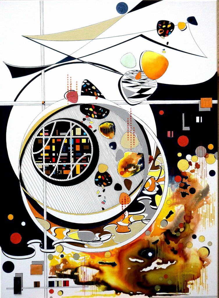 En quête permanente d’une écriture picturale originale, j’essaye de susciter l’émotion par le rythme des formes géométriques et des couleurs.