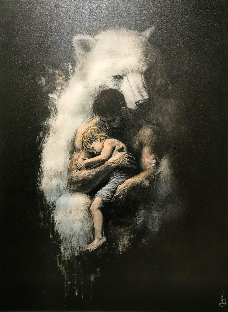 J’ai débuté ma pratique artistique dans le domaine de la musique en tant que pianiste et violoniste. Je me suis tournée ensuite vers la peinture et y trouve un autre moyen d’exprimer mes émotions. Ayant des troubles du spectre de l’autisme, la création artistique me permet de créer un lien avec les autres. J’explore les qualités intrinsèques que les animaux symbolisent et cherche à mettre en lumière comment ces qualités animales se manifestent chez l’humain, créant ainsi une fusion entre les deux mondes. Les émotions tiennent alors une place centrale dans mes compositions.
