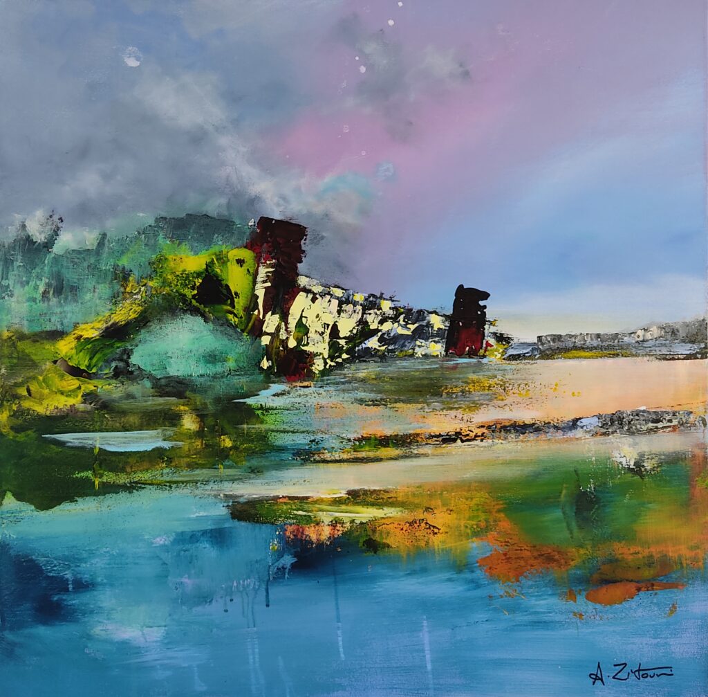 Ma démarche artistique est profondément intuitive et guidée par la spiritualité. Lorsque je peins, je recherche un état intérieur propice à l’émergence d’une créativité non intellectualisée. Loin des contraintes du mental, je laisse libre cours à mon pinceau, m’efforçant de capturer l’invisible, le mouvement, et la « vérité » qui se cache derrière les apparences. Le travail de Zao Wou-Ki est source d’inspiration, il disait vouloir peindre « ce qui ne se voit pas, le souffle de vie, le vent, le mouvement, la vie des formes, l’éclosion des couleurs et leur fusion » et je me retrouve dans cette citation. Cette quête de l’invisible, de l’essence des choses, est au cœur de mon travail. Je m’efforce de traduire sur la toile les forces de la nature, les énergies subtiles qui animent notre monde et qui sont souvent imperceptibles à l’œil nu. Dans mes œuvres, j’expérimente divers médiums et techniques pour donner forme à ma vision artistique. J’exploite la lumière et l’espace pour composer des tableaux dynamiques et suggestifs.