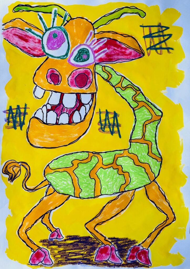 « Monsieur Térez trouve son inspiration dans le monde de l’enfance, la bande dessinée, les comics, les dessins animés: « Mon art n’est pas forcément un exutoire analytique : je n’ai pas besoin de souffrir pour créer … Être heureux est tout aussi libératoire ». Drôle de galaxie. Un univers où se bousculent Grandes Gueules, Bonhomme Tétard, Dame Patate, Hug Sculptures que l’on peut enlacer. Ses pièces monumentales sont en bois, résine ou métal, drôlement dynamiques, délicieusement sucrées de couleurs acidulées. Dans ses dessins ou peintures il mélange acrylique, pastels gras, spray, feutres et crayon de couleur ! Un peu boulimique, le monsieur…. »