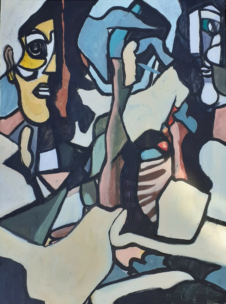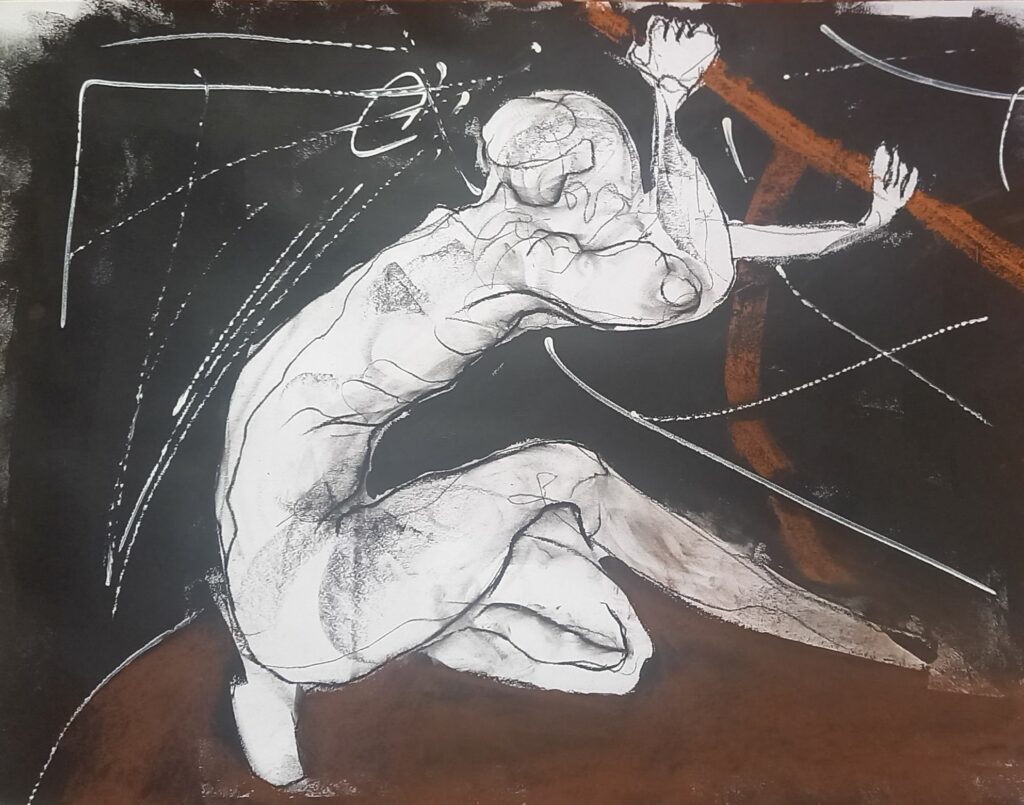 «J’ai débuté une pratique artistique il y a 40 ans par des collages et des peintures acryliques en autodidacte. J’ai participé a de nombreuses expositions en région parisienne avant de partir m’installer dans le Lot ou je vis. Je continue à pratiquer le dessin de nu(au pastel et craie sèche) dans un atelier collectif . Les croquis souvent rapides,pris sur le vif que je realise sont une base que je retravaille ensuite à la peinture acrylique avec differents outils. Je me reconnais dans le mouvement expressioniste historiquement en reaction contre l’academisme et la société, aujourd’hui en réaction contre l’image du corps véhiculée par la publicité et la mode: image lisse,propre,sans défaut et sans emotion : désincarnée. Je tente de représenter la complexité humaine par la transgression,la subjectivité,la rature,le défaut,le repentir en espérant toucher et émouvoir.»
