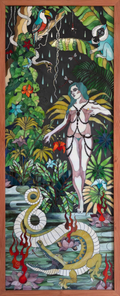 engagement pour l’esthétisme et l’excellence. Ma démarche artistique repose sur la modernisation de la technique ancestrale de la mosaïque et l’utilisation de matériaux nobles tel que le verre, que je mets en œuvre avec passion, patience et délicatesse pour donner vie à des compositions visuelles étonnantes. Mon style se caractérise par des formes empruntées aux courants, Naïf, Art Nouveau, Art Déco et Naturaliste. Des couleurs vives, mêlent tradition et modernité pour créer des pièces uniques et contemporaines.