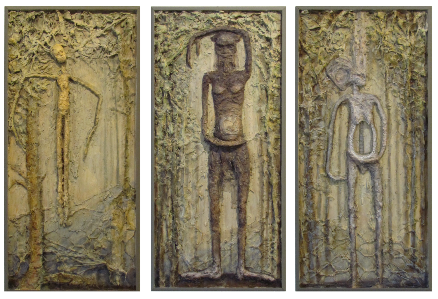 proximités, par des peintures très dessinées et par des bas-reliefs. Exprimer ensemble l’intériorité secrète et la liberté du geste, l’inertie et le mouvement, la solide composition et l’équilibre précaire, une réalité physique et un rêve : telle est toujours son ambition. Son œuvre comprend de nombreuses sculptures monumentales, des sculptures en bronze, des tableaux associant souvent collages, dessin et peinture.