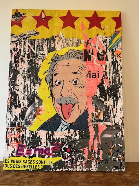 Parfois je superpose de la matière, des affiches ou autre dans l’optique de donner des effets un peu bruts. Je m’inspire du Pop Art, du Street Art (comme le collagiste Jacques Villegle), de l’art abstrait. J’adore voir mes créations prendre vie dans les yeux des curieux. « Un tableau ne vit que par celui qui le regarde » (Picasso).