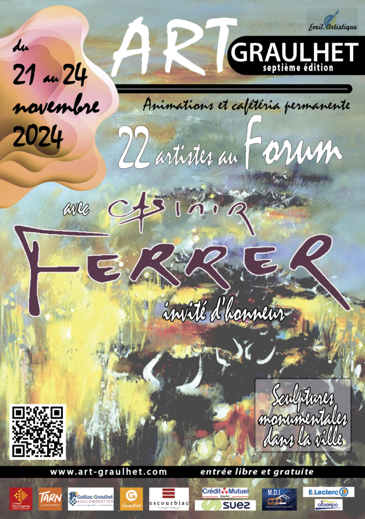 Un grand coup de projecteur sera donné cette année à Casimir Ferrer, notre invité d’honneur. De nombreuses oeuvres seront présentées au forum, sculptures et peintures ou même un mariage des deux. Certaines pièces devraient même trouver leur place sur l’espace public graulhétois.
